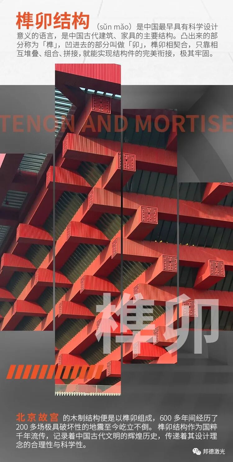 榫卯结构是中国最早具有科学设计意义的语言,是中国古代建筑、家具的主要结构。凸出来的部分称为“榫”,凹进去的部分叫做“卯”,榫卯相契合,只靠相互堆叠、组合、拼接,就能实现结构件的完美衔接,极其牢固。