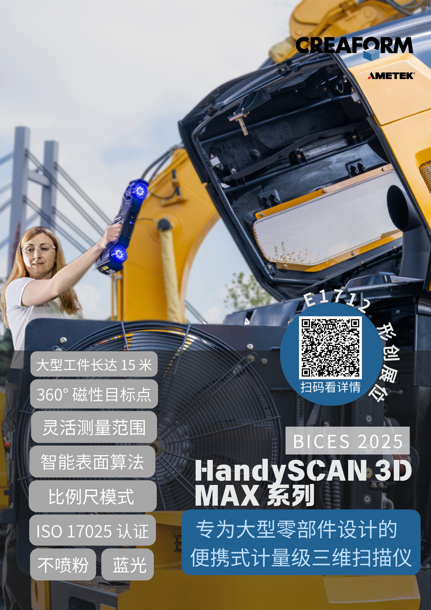 第十七届中国(北京)国际工程机械、建材机械及矿山机械展览会BICES 20252025年9月23日至26日E1712CREAFORM 形创展位北京 | 中国国际展览中心顺义馆 更多展品资讯,扫码在线体验!